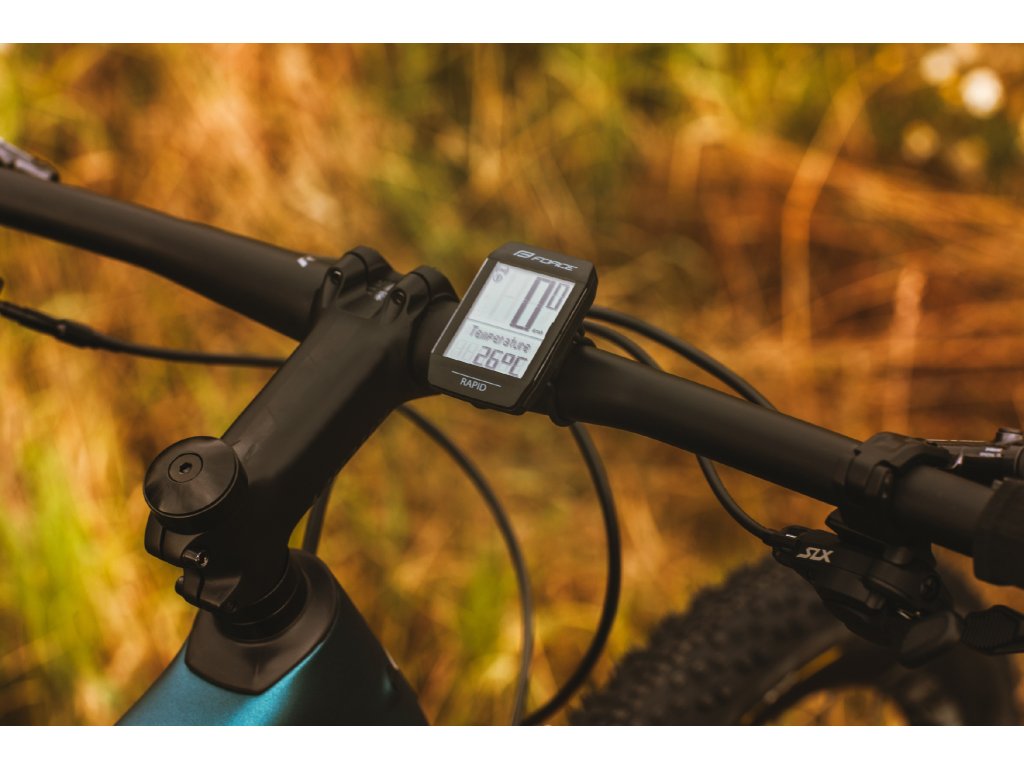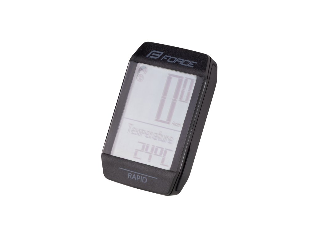 Bezdrátový cyklistický počítač FORCE RAPID s novým typem mikročipu a magnetického senzoru je dokonalým řešením pro cyklisty, kteří hledají vysoce spolehlivý, voděodolný a funkcemi nabitý cyklistický počítač. Tento model, navržený pro maximální všestrannost a přesnost, nabízí 15 základních funkcí pro hloubkovou analýzu výkonnosti, včetně možností pro dvě kola a sledování teploty.